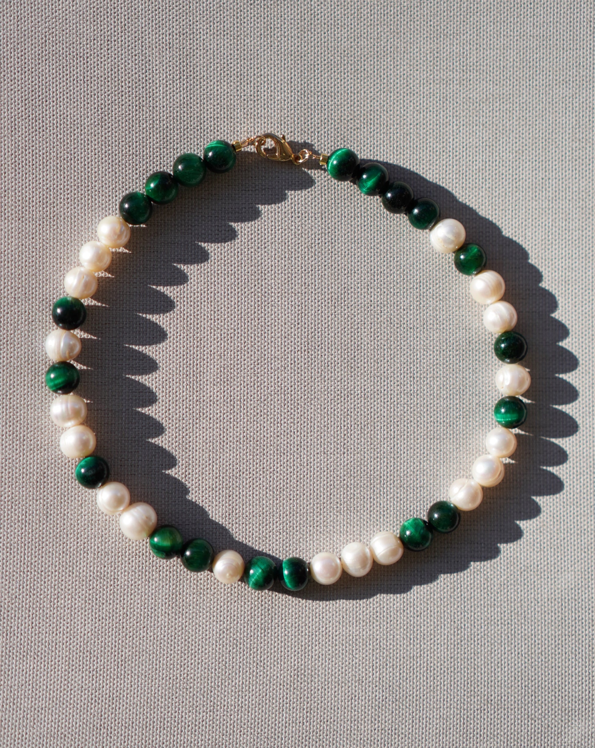 Lavish Large Freshwater Pearls and Green Tiger Eye Necklace
