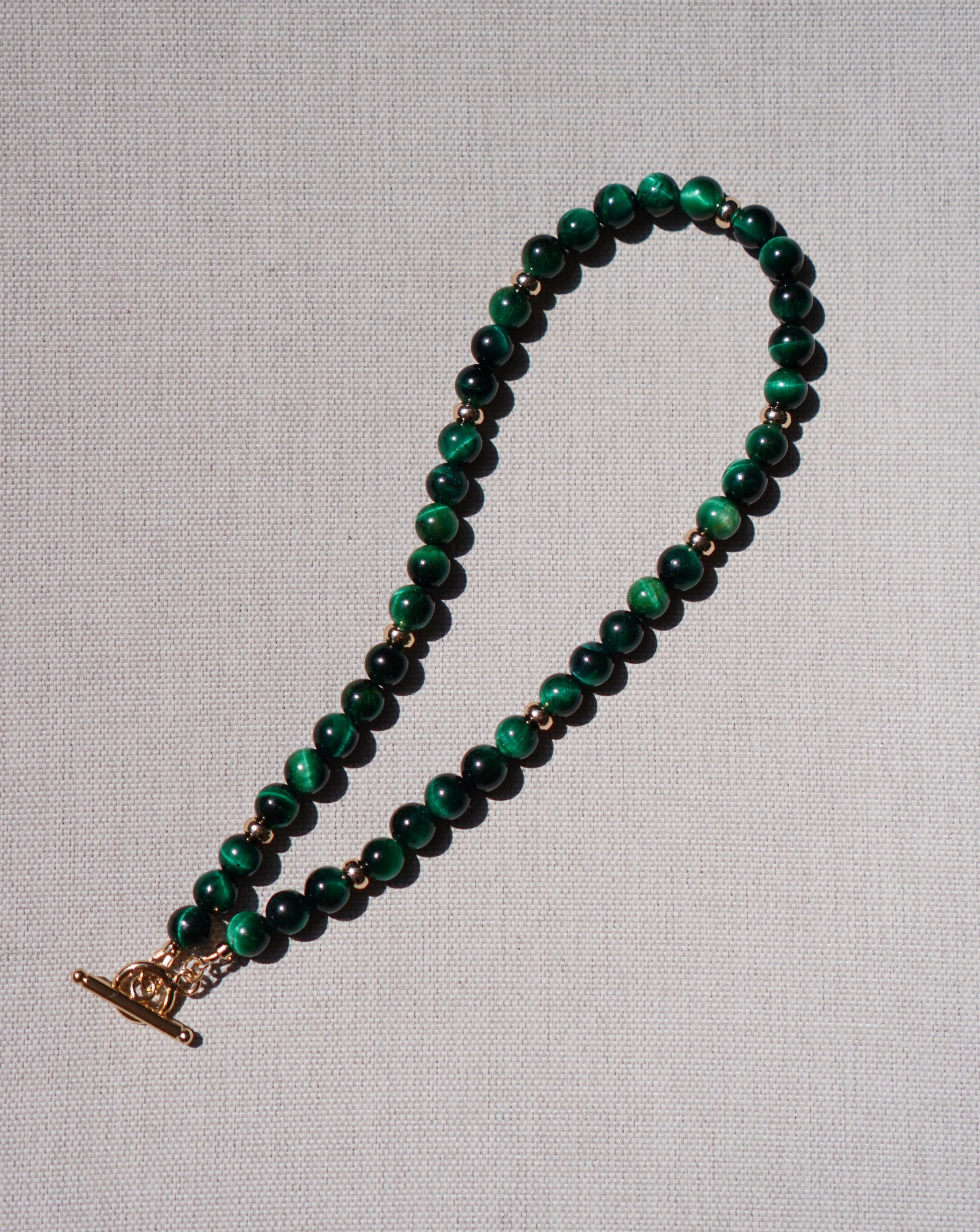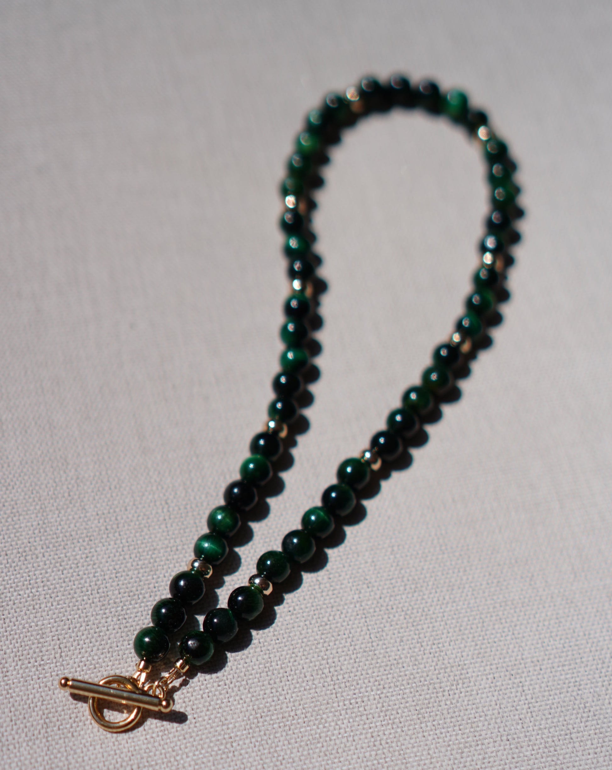 Green Tiger Eye Necklace with 14K gold filled beads and toggle clasp