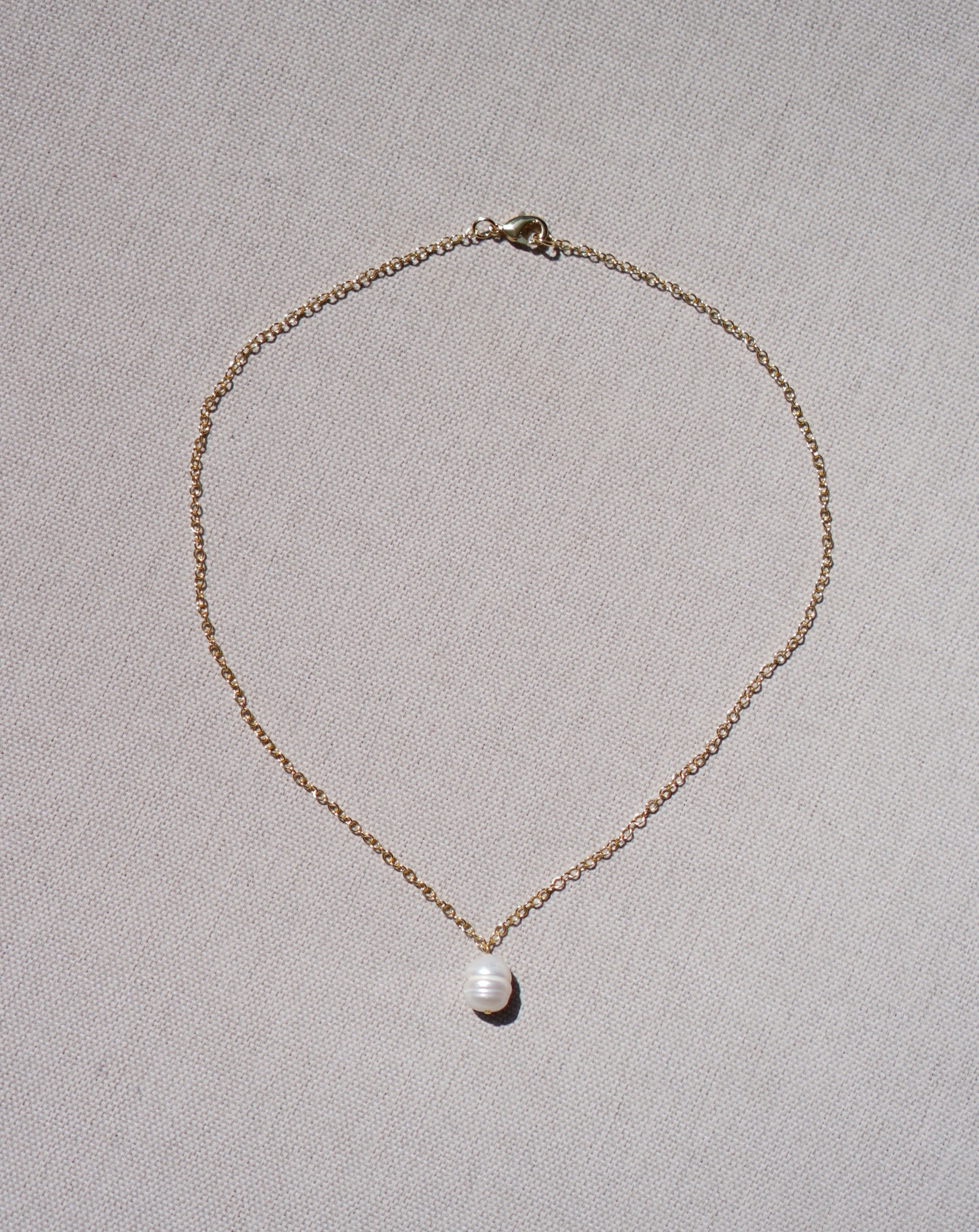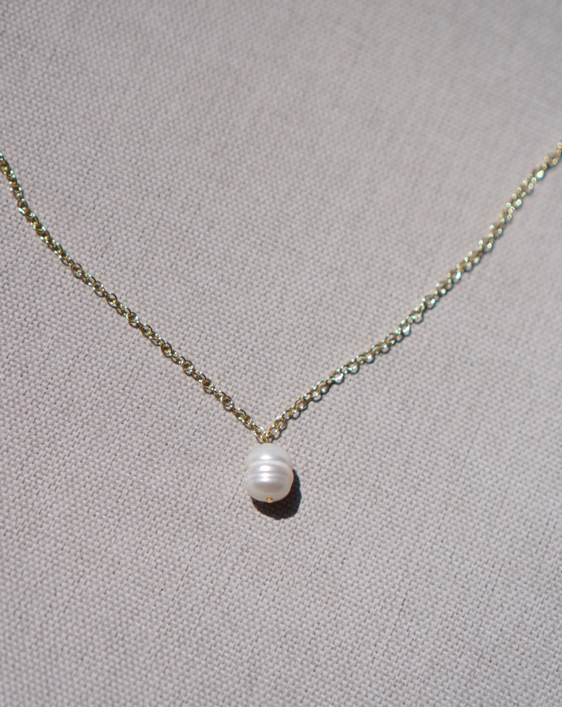 Elevate your look with this chic and elegant Pearl on Gold Filled Chain Necklace. The 18k gold-filled chain is designed with a sparkling pearl for an added touch of sophistication. Perfect for special occasions or daily wear, this necklace will add a touch of timeless beauty to your style.